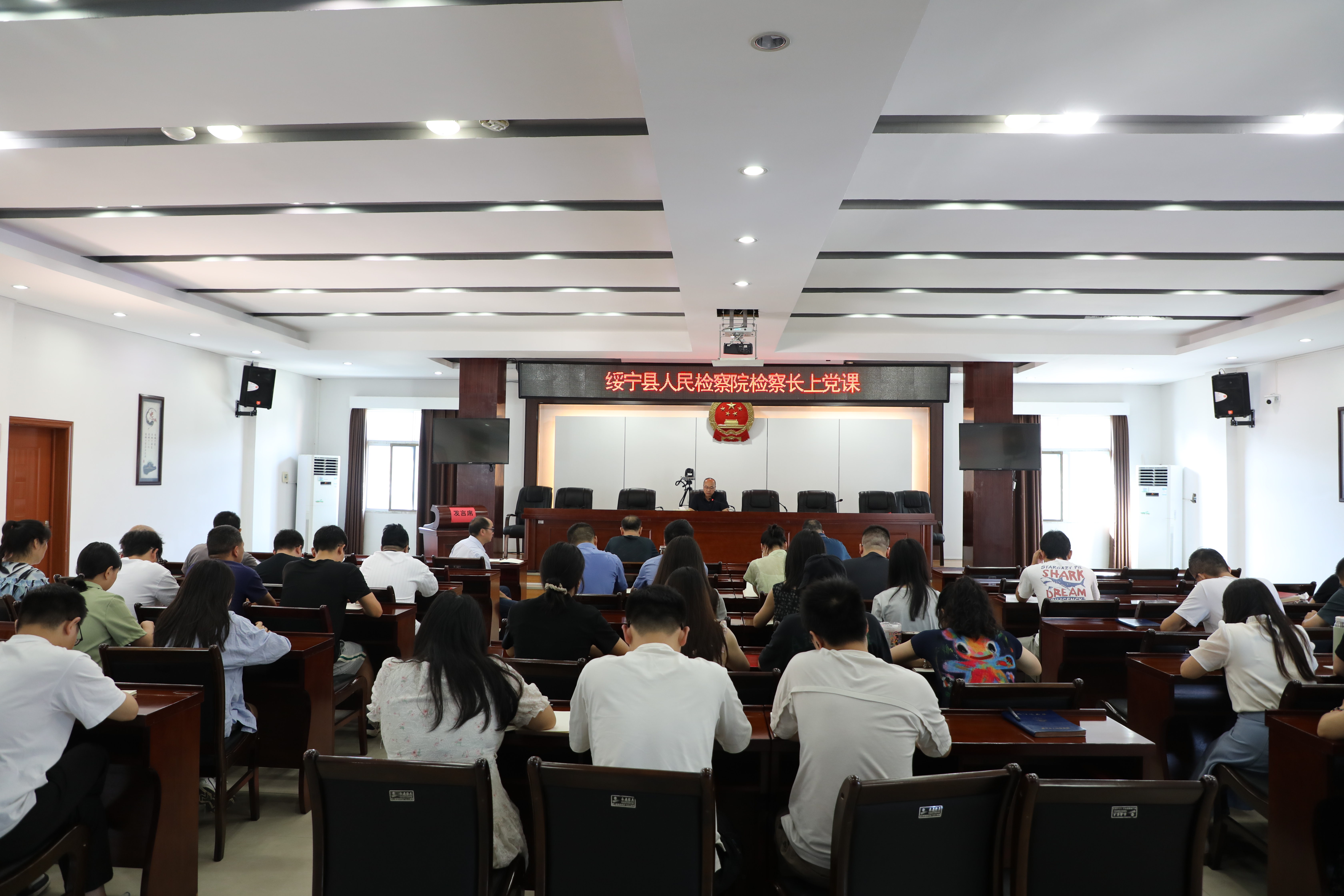7月1日上午,绥宁县人民检察院召开庆祝中国共产党成立104周年大会,院党组书记、检察长王瑞平以《筑牢廉洁防线 永葆检察本色——关于深化落实中央八项规定精神、坚决整治违规吃喝问题》为题为全体检察人员上党课。